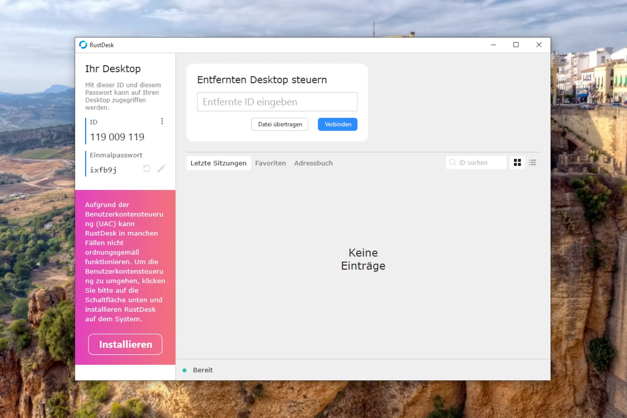 Um Zugriff auf einen Windows-Rechner zu ermöglichen, genügt das Herunterladen und Starten von RustDesk.